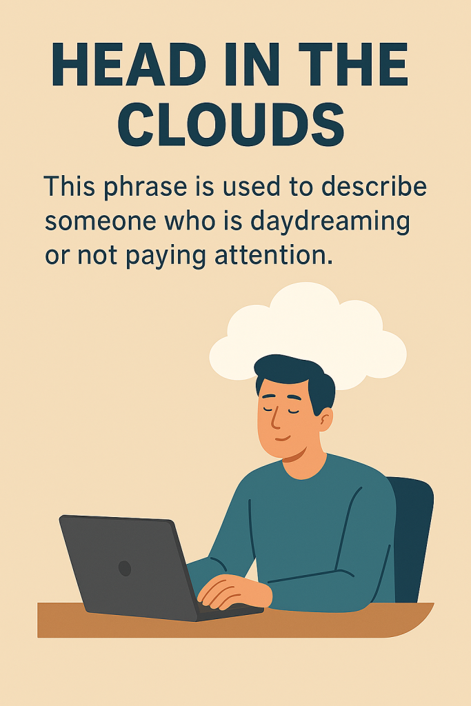 “Head in the clouds” là một thành ngữ tiếng Anh cổ, dùng để mô tả người mơ mộng, thiếu tập trung hoặc không thực tế. Nó mang tính hình tượng, dễ hiểu và được sử dụng phổ biến trong giao tiếp hàng ngày.