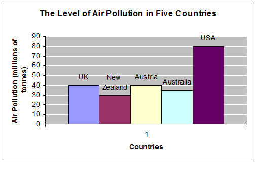 The country with the higest level of pollution is USA and the country with the lowest is New Zealand.