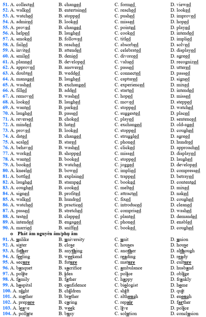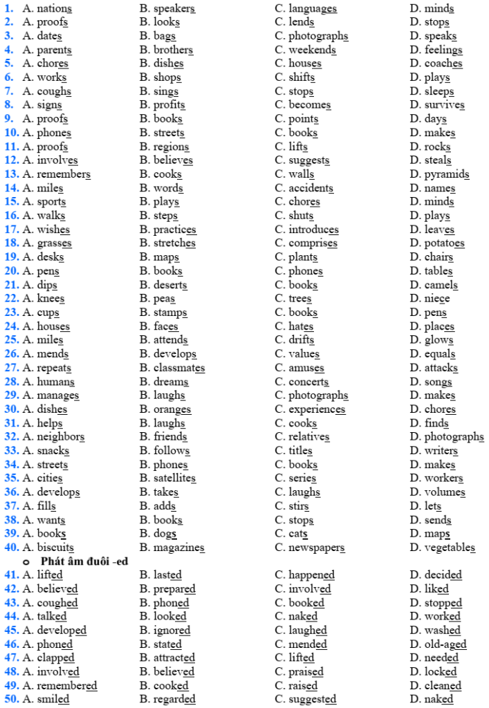 Đề ôn thi Tốt nghiệp THPT Tiếng Anh – MODULE 1: PHONETICS