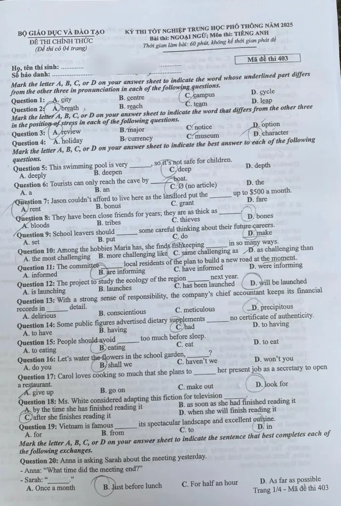 Chiều thứ 6 ngày 27/6/2025, hơn 1,1 triệu thí sinh tham dự kì thi Tốt nghiệp THPT năm 2025 môn Tiếng Anh. Viraldiem10 thân mời các bạn đón đọc, tham khảo nhé: