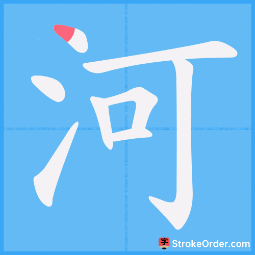 - Nguồn gốc: Chữ “河” gồm bộ “氵” (thủy – nước) ở bên trái, gợi ý nghĩa liên quan đến nước, và phần “可” (khả) ở bên phải, đóng vai trò chỉ âm.