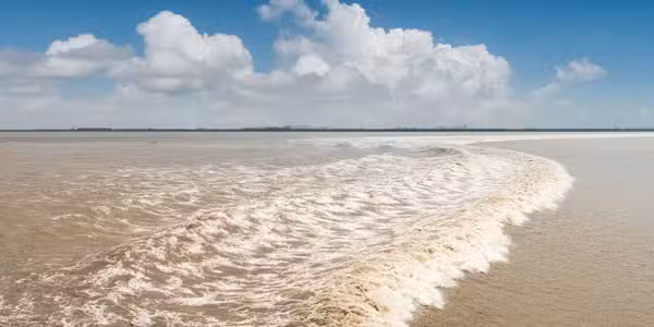 The thing happens in the water. It is a special wave. Tides create this wave. The wave moves forward one river. It forms a straight line. It looks really cool. It attracts many surfers and tourists.