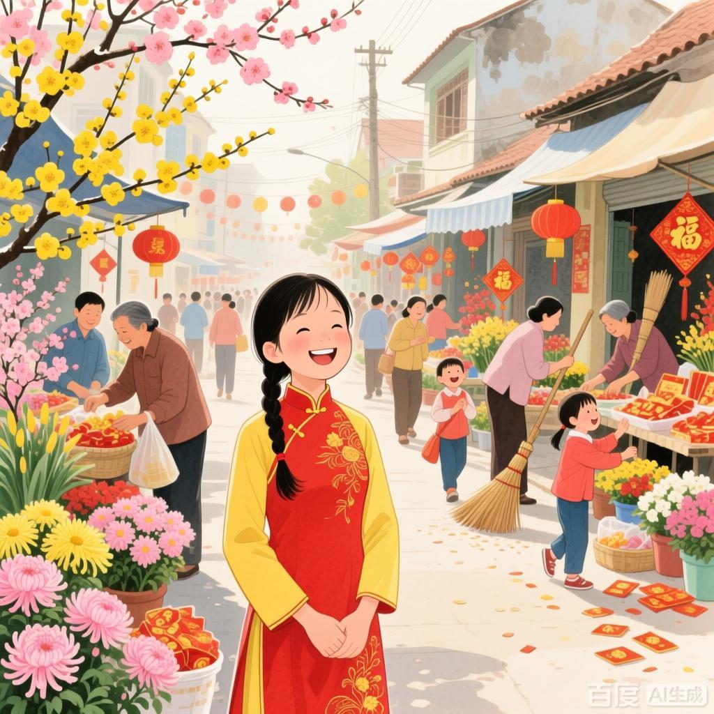 春节自古以来就是越南民族的传统文化之美。当2026年的春节即将到来时,作为一名十年级的学生,我心中涌起了许多难以言喻的情感:既期待又怀念往昔的春天。年末的日子里,街道上到处都热闹非凡。春节花市充满了黄色的梅花、粉红的桃花和灿烂的菊花。大人们忙着购物、打扫房屋,而我们则迫不及待地想穿上新衣服,收到压岁钱。扫帚扫地的声音、邻居们的欢声笑语让空气变得更加温暖。