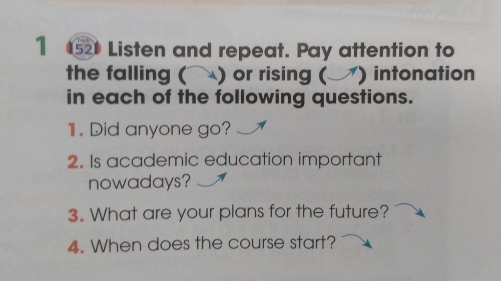 Listen and repeat. Pay attention to the falling or rising intonation in each of the following questions. (Lắng nghe và lặp lại. Hãy chú ý đến ngữ điệu xuống hoặc lên trong mỗi câu hỏi sau đây)